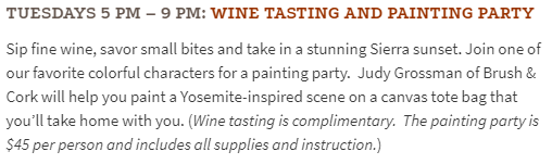 With Rush Creek Lodge being designed to be a destination within the amazing destination of Yosemite National Park, the whole marketing efforts have always centered around the lodge being a visitors’ ‘Backstage Pass to Yosemite.’ In Fall of 2018, we decided to take that idea to another level and host three weekly events that’d highlight a unique offering to the Yosemite area that you’d only be able to experience by visiting Rush Creek Lodge. And thus Backstage Pass to Yosemite was born.