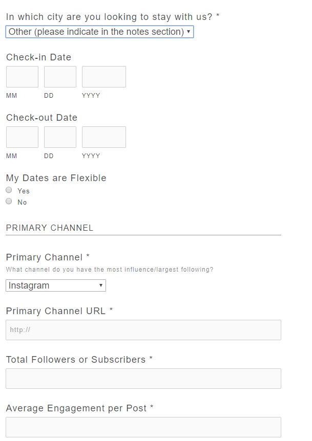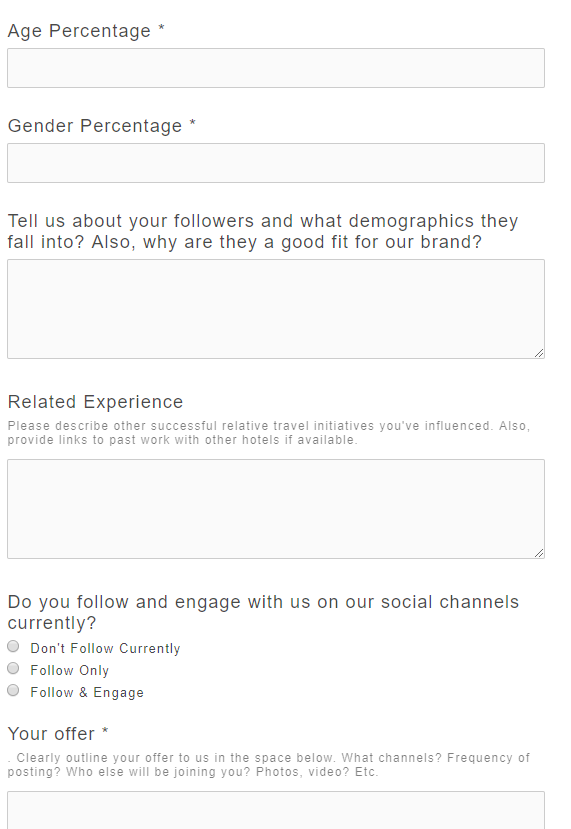 Here are screen snippets of the ‘Media Influencer Request Form’ I created as a way to evaluate the large influx of requests we were receiving for our collaboration campaigns: