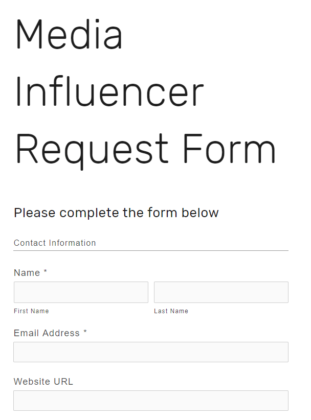 Here are screen snippets of the ‘Media Influencer Request Form’ I created as a way to evaluate the large influx of requests we were receiving for our collaboration campaigns: